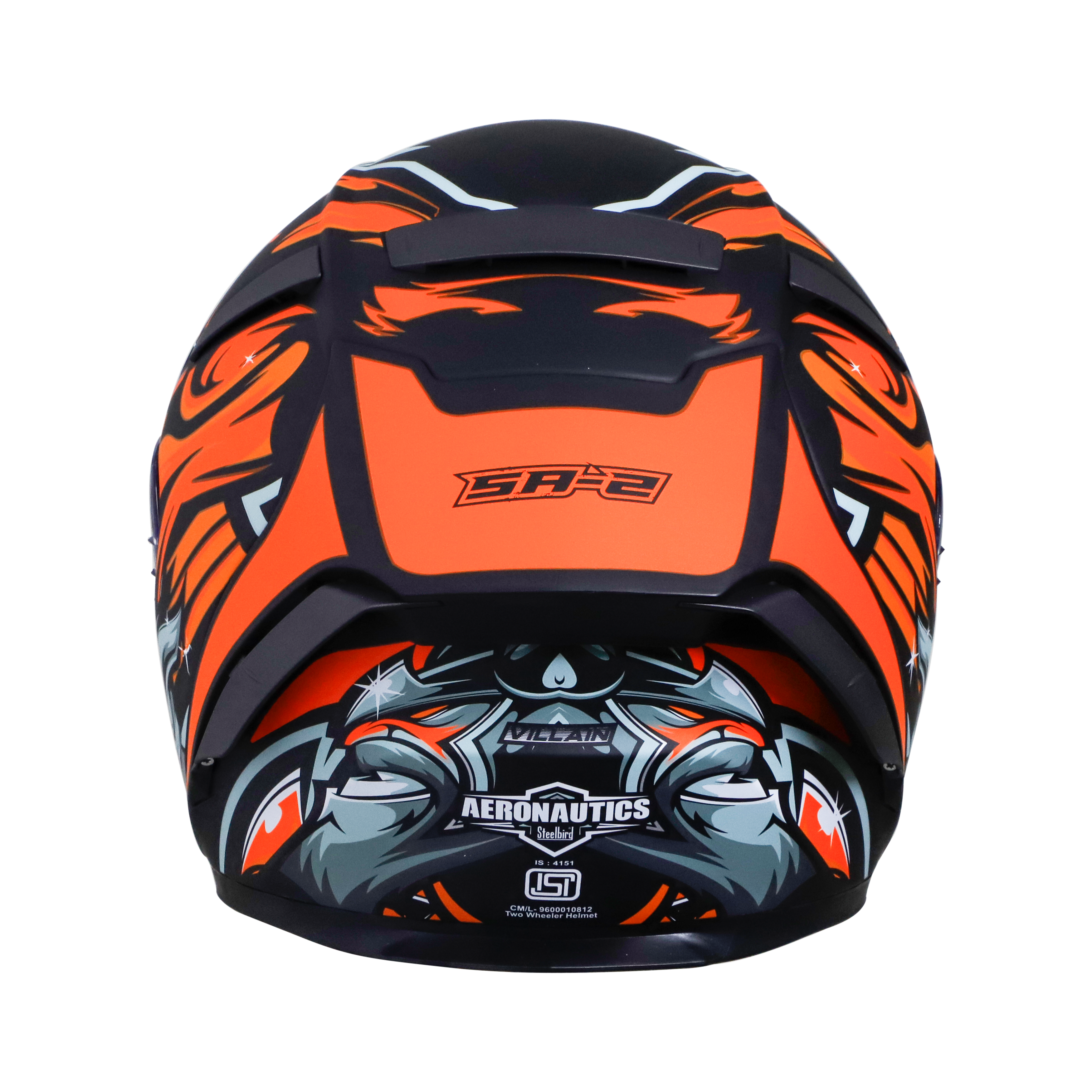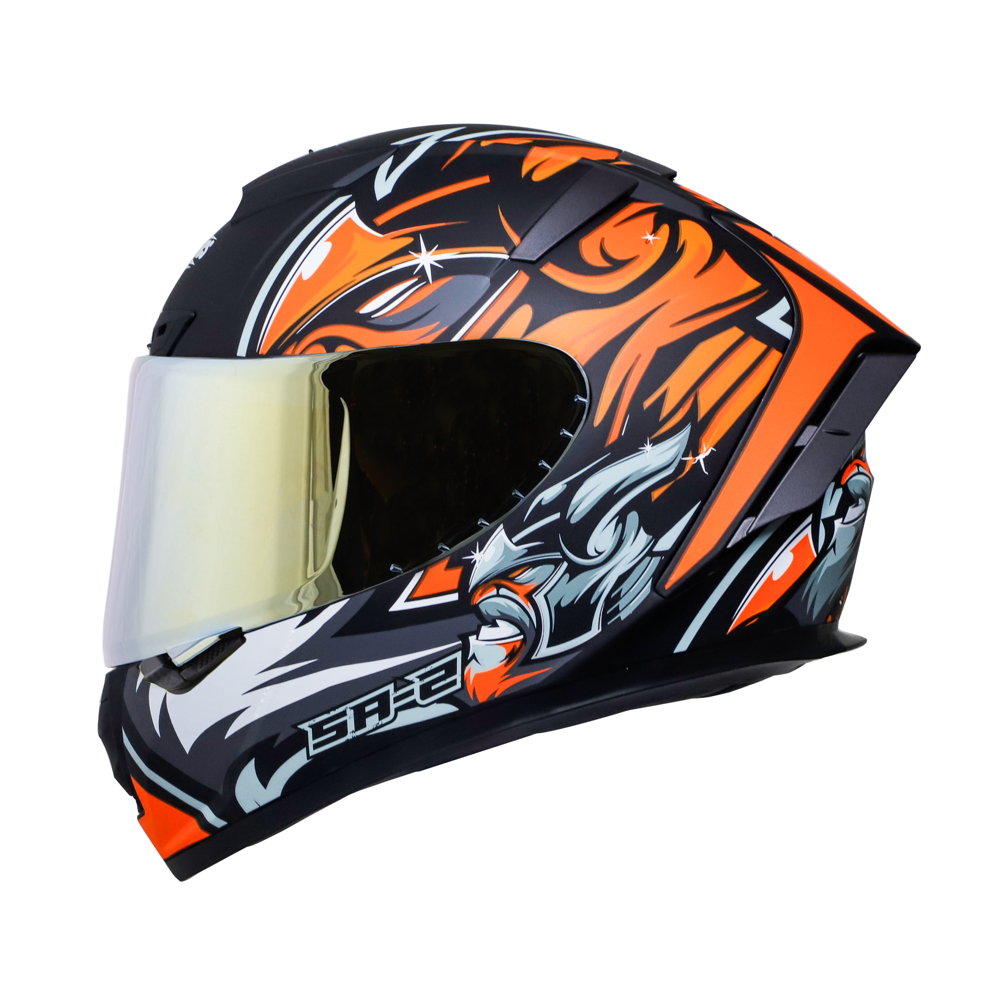 SA-2 VILLAIN GLOSSY BLACK WITH ORANGE (FITTED WITH CLEAR VISOR EXTRA CHROME GOLD VISOR FREE)