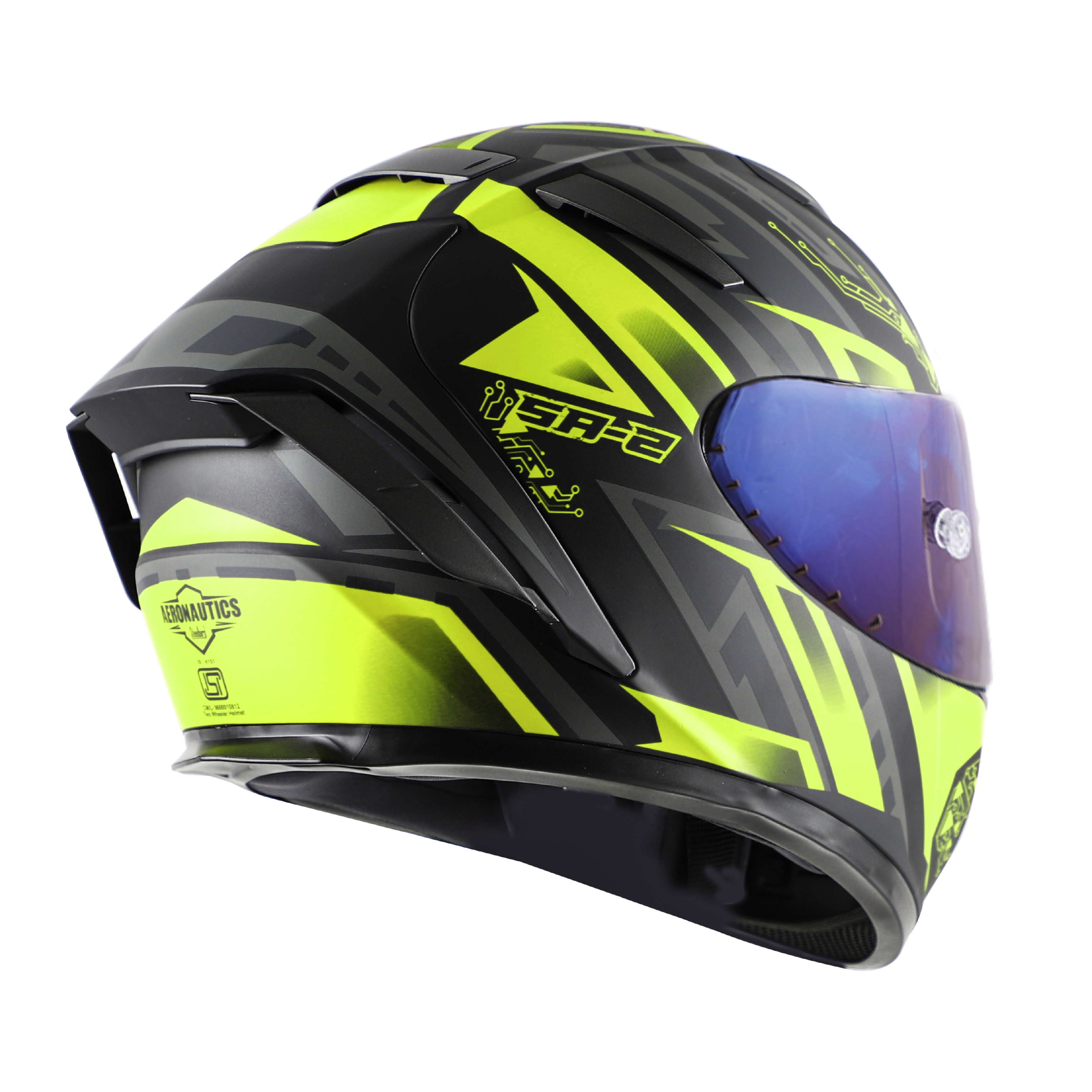 SA-2 ELECTRIC MAT BLACK WITH NEON (FITTED WITH CLEAR VISOR EXTRA BLUE CHROME VISOR FREE WITH ANTI-FOG SHIELD HOLDER)